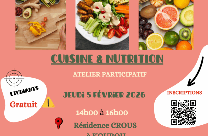 A vos agendas📱 ! Avec l’ARS, l’Université Guyane, le CROUS et la MUTUALITE FRANCAISE venez (ré)apprendre à cuisiner 👩🏻🍳👨🏿🍳 avec notre nutritionniste : une recette gourmande 😋, saine🥗 et petit budget 💶.